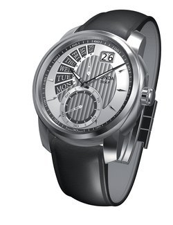 Imaginative interpretations are highly welcome when choosing caliber 7004.P for a watch model. An asymmetrical arrangement of the retrograde day indicator, a large date window and the small second enables watch producers to design sophisticated and entirely new looks. Today, the Mastertech 7000 series – 15’’’ in size – comprises six movements featuring various retrograde styles with day indication and a big date calendar, a sleek big date 3-hand version plus a model with an oversized small second.