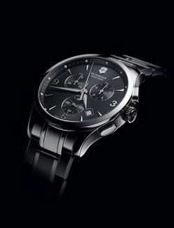 While the Alliance collection has evolved constantly, its values have remained intact. Reliability, understated design, functionality and Swiss quality are the unchanging core attributes of timepieces from Victorinox Swiss Army. The latest Alliance model with its flowing and dynamic lines is a perfect embodiment of these standards. The lyre-shaped horns, round case and brushed steel form a complementary and harmonious whole. In fact, the entire layout reflects a modest approach, from the matt lacquered charcoal-grey dial echoed by the counters to the hour-markers, which include only three Arabic numerals. This extremely pared-down approach, combined with meticulous attention to detail and undeniable know-how, combine to make this a truly classic model with a subtly modern touch.
