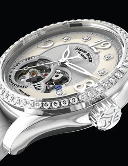 Because of the rarity of its movement, the LL9 is limited to only 500 pieces! Armand Nicolet’s watchmakers have achieved a technical feat by reworking an FHF 905 calibre from 1960 so that it meets today’s requirements. This timepiece, the brand’s first Limited Edition designed exclusively for women, is a complete reinvention, but one that highlights its vintage mechanism. This can be seen through the finely guilloché, openworked dial. A perfect blend of Swiss watchmaking tradition and avant-garde technique, each model is exceptional and elegant and will become the prized possession of only a few very happy ladies.
