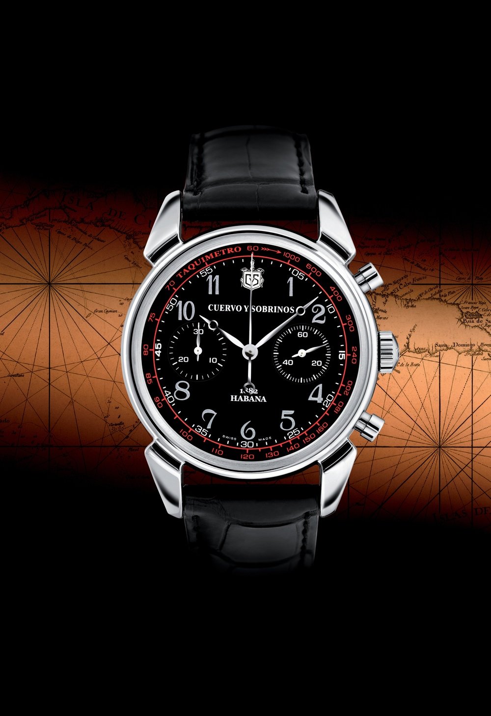 Once again, Cuervo y Sobrinos has revived one of its most emblematic models from the past, the Historiador Cronógrafo. True to the styling that made the brand successful in the 1950’s, the case measures 40 mm, the classic lines are underscored by the traditional horns, and the sapphire crystal is double-curved (the crystal was formerly made of acrylic hesalite). Behind the retro and neo-classical inspiration of this chronograph lie the roots of a brand combining Latin passion with Swiss watchmaking expertise, which adds to its unique personality.
