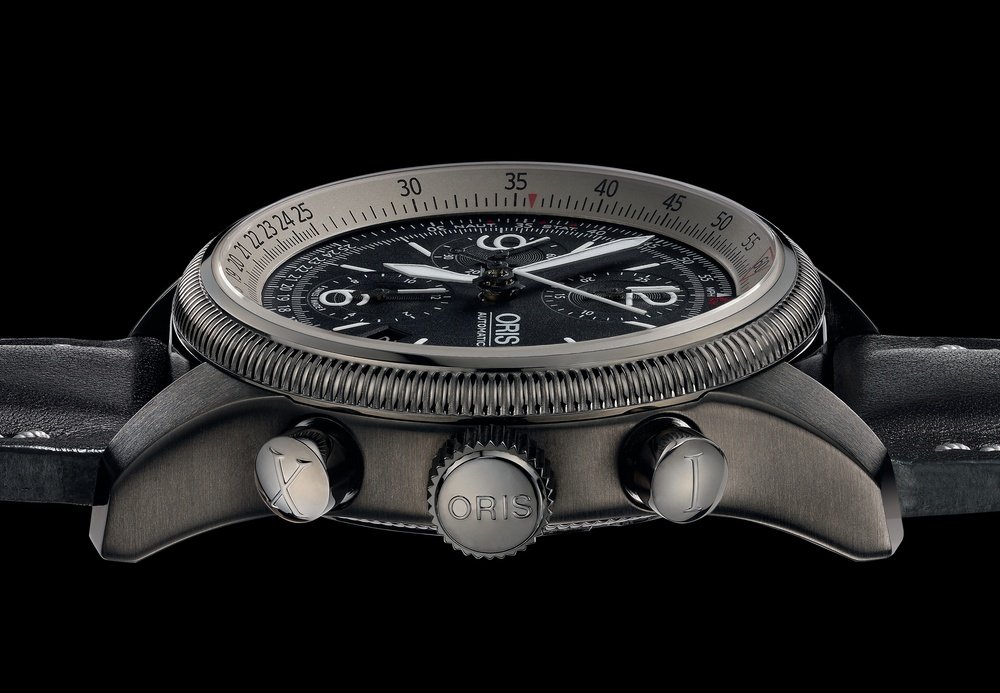 With its Big Crown collection, Oris demonstrates its expertise in the field of watches that pay tribute to historical aircraft. Inspired by the Bell X-1, the first plane to break the sound barrier, the Big Crown X1 Calculator refers to the era when flight plans were still made using slide rules, and accentuates this unique mechanism. Its rotating bezel serves to adjust the slide rule and to calculate fuel consumption for a given flight time, while the caseback displays a m/ft conversion table for international use. The chronograph push-pieces bear the X and 1, like a last nod to the date of that historical feat accomplished at 10:18 on October 14th 1947.