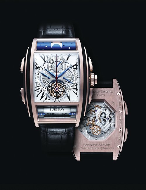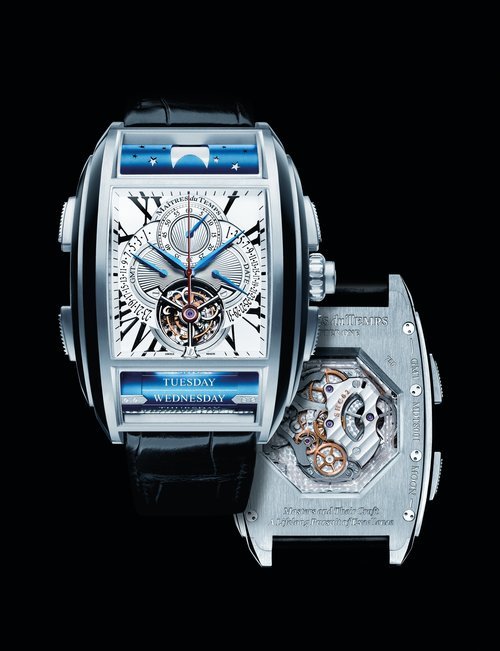 Chapter Two is the second entirely original and innovative timepiece from Maîtres du Temps. It stems from a unique cooperation between Daniel Roth and Peter Speake-Marin, who have pushed back the limits of haute horlogerie with the world’s most legible instantaneous triple calendar timepiece. This model combines a large date with the day of the week and the month of the year written out in full on their respective rollers at 6 and 12 o’clock. A truly stunning creation!