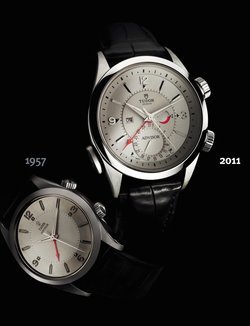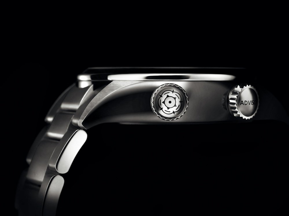 The new Tudor Advisor is the latest addition to the Heritage collection, launched in 2010 and inspired by the brand’s rich history. This blend of technical prowess and style is a re-interpretation of an iconic alarm watch dating from 1957. Its movement is equipped with an exclusive module that emits a clear, constant ring when the alarm goes off. While the middle retains its original proportions, the case has increased in diameter from 34mm to 42mm to reflect more contemporary tastes. A red centre hand points out the alarm time, a window at 3 o’clock indicates the alarm power reserve, and there is an On/Off window at 9 o’clock. This resolutely modern watch with its delicate balance of style and performance encapsulates all Tudor’s retro-chic spirit.