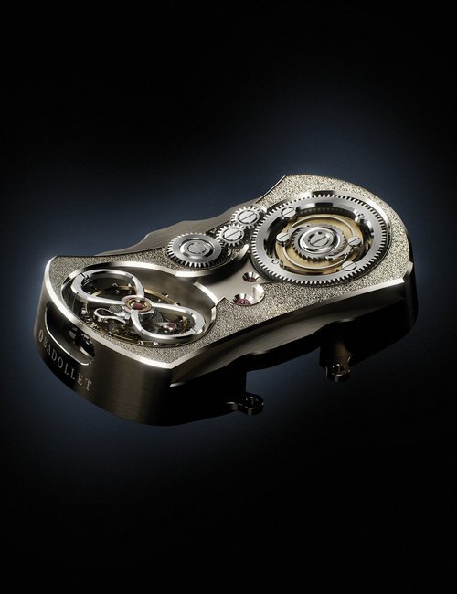 The Stellaire by Badollet has its head in the stars. Imbued with a dreamlike sense of mystery, it is distinguished by a plate entirely crafted in meteorite and by the upper bridge of the tourbillon carriage set with extra-terrestrial olivines, representing an unprecedented technical feat. The movement bridges appear to be floating weightlessly, forming galactic circles reminiscent of the path traced by stars spinning around the same centre of gravity. Nature itself plays a part in making each of these watches truly unique, since the high proportion of iron in the meteorite, exposed to cosmic rays for around 93 million years, may modify the colour of the movement without altering its functionality. 30-piece limited series.