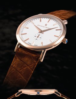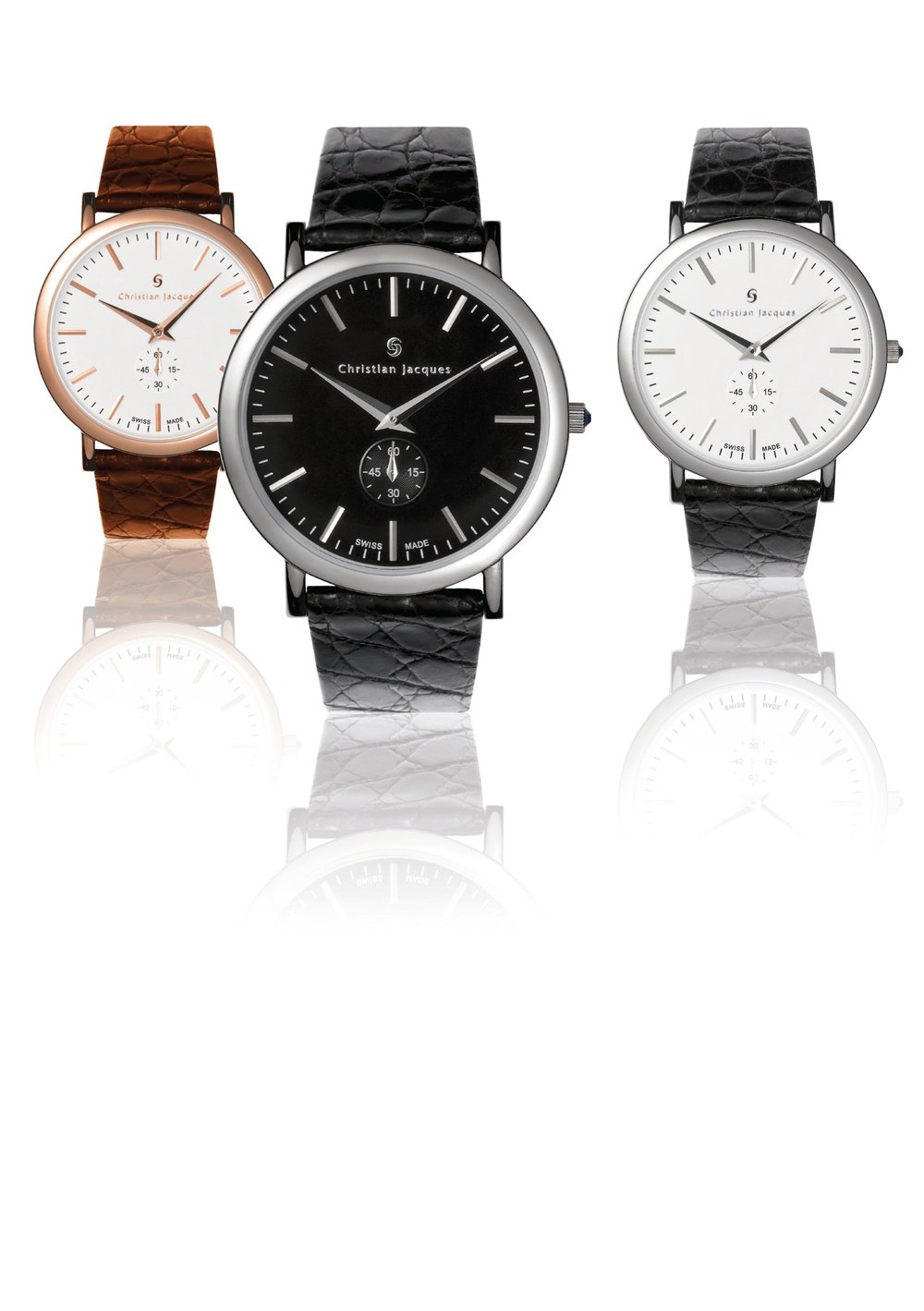 Christian Jacques is proud to present its new collection, the Classis, which is available in mechanical or quartz versions. From the smallest details to the quality of the workmanship, all three models reflect a return to pure classicism in its simplest form. And classicism according to Christian Jacques includes a round case adorned with a cabochon crown, an immaculate dial displaying only the hours and minutes, an off-centre small seconds display, and the appeal of stainless steel in its natural state or in a PVD gold-plated version. These timepieces are distinguished by their discreet and elegant ultra-thin case, measuring a mere 5.85mm. Thanks to its extreme refinement, this all adds up to a timepiece that is chic, delicate and very comfortable to wear.
