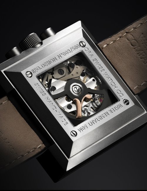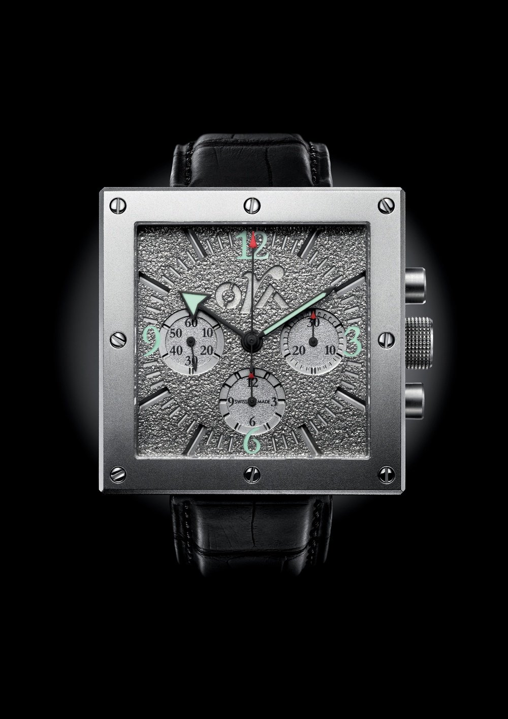 The Ora #1 is a concentrated blend of dreams set inside a titanium showcase! This distinctive watch epitomising the brand is distinguished by the fact that its case and its square dial form a single entity machined from a single block of titanium. The dial fashioned by spark-erosion reveals a subtle grain hovering on the borderline between art and technology. The brand’s first mechanical chronograph is a high-quality product featuring architectural lines “designed in the sun and sculpted by the stars”.
