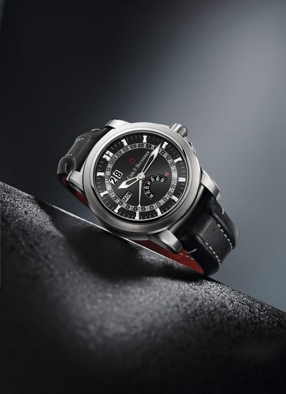 The Patravi EvoTec Calendar, the latest addition to Carl F. Bucherer’s Patravi EvoTec collection, features a distinctive round case. It is equipped with the very latest technology: an exclusive in-house CFB A1004 movement and a specially-designed functional module displaying not only the date and day but also a hand week-indicator. Innovative features that extend beyond its exclusive movement to embellish the whole of its elegant case.