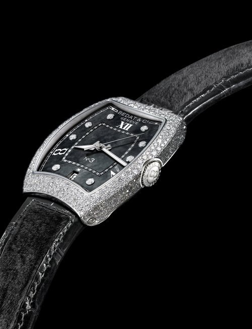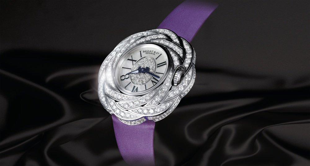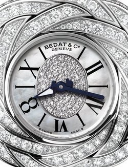 Inspired by the Art Deco movement of the 1930’s and by the ancestral savoir-faire it shares with the leading craftsmen of the Jura, Bedat & Co proudly presents Model 882, a jewellery watch guaranteed to appeal instantly to women. A perfect marriage of watchmaking and jewellery, this timepiece is set with no fewer than 365 diamonds for a total of 3.53 carats. The white mother-of-pearl dial, with its exquisite diamond-set centre, and the interlaced corolla of diamonds exemplifies goldsmithery at its very finest. The creator’s final touch, the figure 8, will remind women of the logo of the brand behind this refined watch, and of the symbol of happiness it represents.