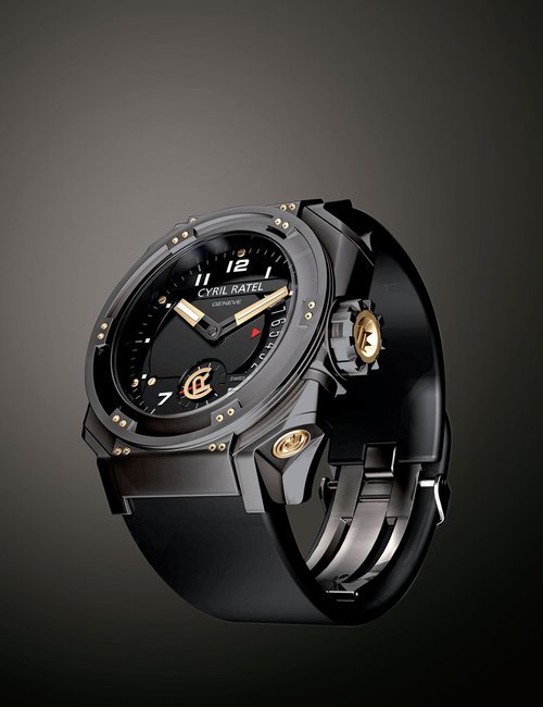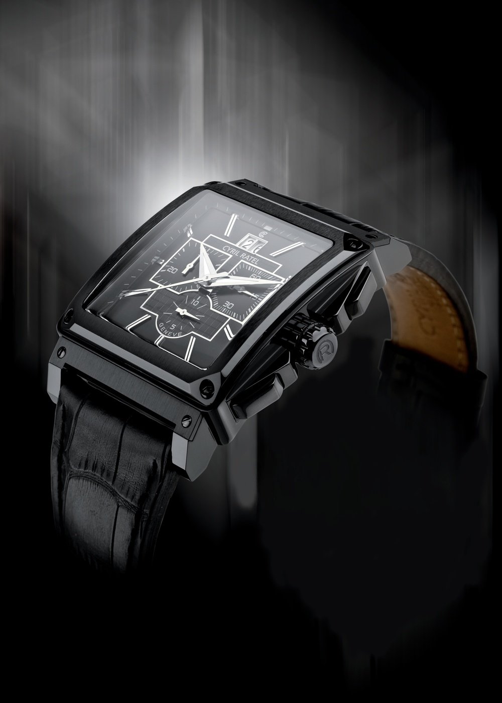 The inspiration behind this new timepiece is the mistral, that fierce, cutting wind that sculpts the landscape in southern France. Cyril Ratel has reinterpreted this force of nature through the distinguished, masculine lines of its latest chronograph. A powerful rectangular case, an interplay of shapes and symmetries on the dial and the matt black colour of its exterior round off this virile and elegant new creation to perfection.