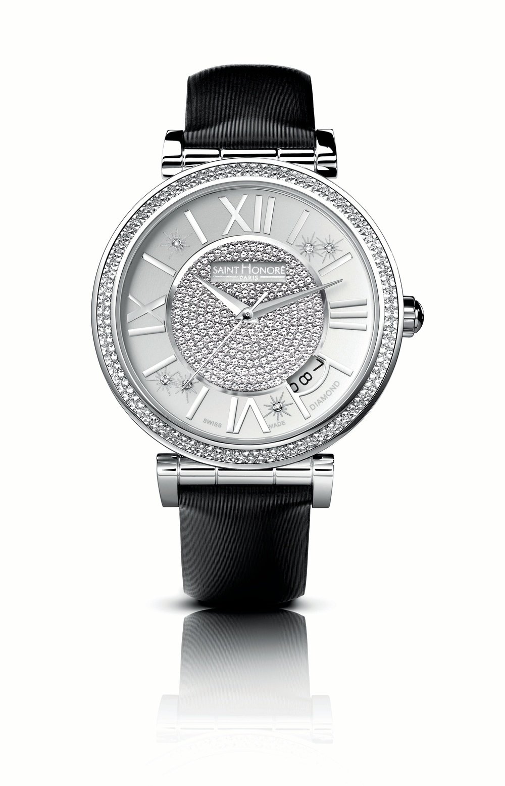 SAINT HONORE is exploring a new facet to femininity with Opéra, a watch and constant companion. Sophisticated or lightweight depending on the time of day or night, Opéra is a delicious mix of emotions and freshness. It personifies seduction through its blend of watchmaking know-how, play of materials, sizes and colours and the magic of diamonds. The totally-round case conjures up softness and femininity and underlines the exclusivity of this model with its two different versions - 33 mm and 37 mm. The case is extended for even greater comfort by movable horns that match the shape of the wrist perfectly. But the star attraction is without question the magnificent “Eclair” executions. Loyal to its pioneering traditions, SAINT HONORE presents exclusively immensely precious bezels and dials, magnified by a unique “pavé of diamonds”-style work. These “Eclair” versions are truly exclusive and give Opéra an originality never seen before. The Roman numerals hovering between elegant and simple and their layout reveal a whole new type of classicism.
