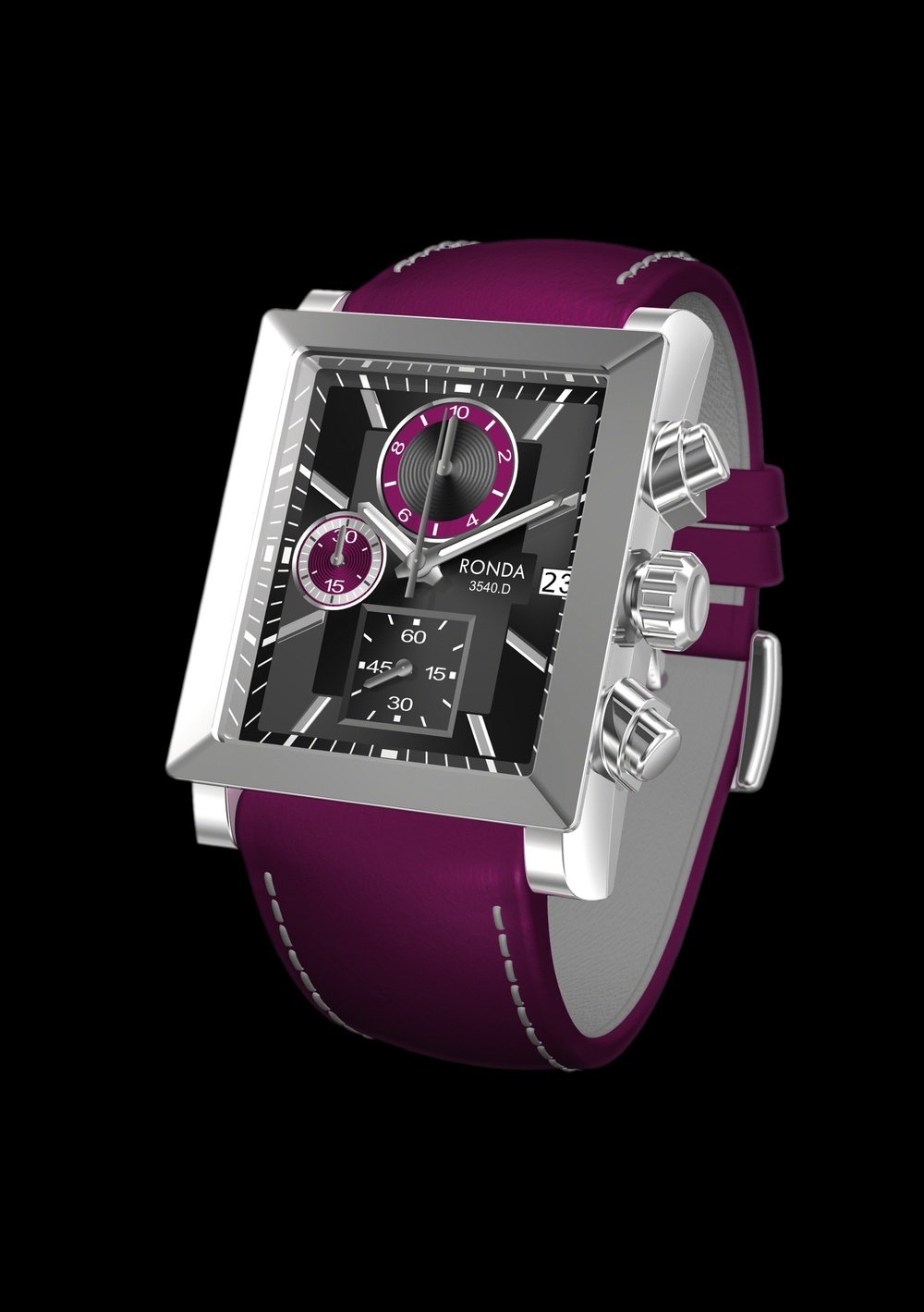 RONDA presents the first-ever Swiss Made quartz chronograph with counters at the 6-9-12 o’clock positions. Once again, RONDA’s innovation will permit the development of new watch models that move away from the usual “classic” look. What is particularly striking about this new 10½ x 11½’’’ chronograph is its ability to be used for elegant ladies’ watches, contemporary-style rectangular cases and men’s models alike: the opposing counters, being 7.50 mm from the centre, offer ample scope for watch dial designs. The second innovation in RONDA’s 3500 Series that was newly launched in 2011 is the two-eye 3520.D chronograph. It has its counters at the 6-12 o’clock positions, and features a dual 30-minute and 12-hour counter.