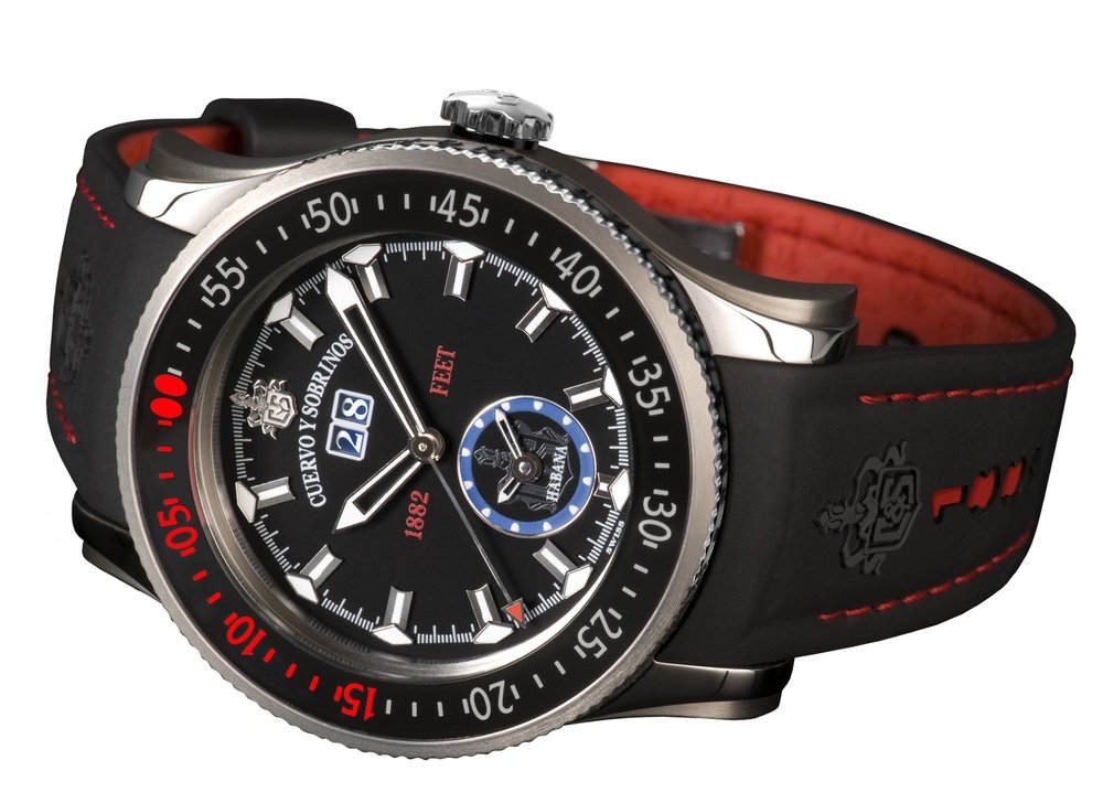With a spectacular Manjuari fish, a unique symbol of Cuba, engraved on the back of each one, the Robusto Manjuari is a beautiful tribute to its origins. Nor is this the only reference. This dive watch, whose modular case is crafted from steel, titanium and rubber, is water-resistant to 1,882 feet, a symbolic depth as Cuervo y Sobrinos was founded in 1882. This accomplished timepiece combines ruggedness, sporting style and comfort without forsaking the excellent legibility of its dial with its dual time function. The Robusto Manjuari fits perfectly with the identity of this Swiss brand with a Cuban heart whose collections brilliantly combine innovation with cutting-edge watchmaking technology.