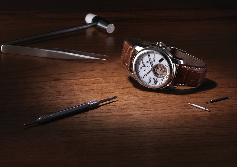 Automatic, FC-938 calibre, 27 jewels, 28,800 vib/h, circular-grained finish, chamfered and rhodium-plated balance bridge with "Côtes de Genève" motif, 42-hour power reserve