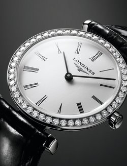 The watches in the “La Grande Classique de Longines” collection have changed little since its launch in 1992, finding continuity in the essential beauty of a design that reflects Longines’ inherent elegance. This model from the “La Grande Classique de Longines” collection is no exception. Steeped in the tradition of true classics, the slimness of the case - just 4.2 mm for a diameter of 24 mm - catches the eye. The pristine white dial is delicately enhanced with painted Roman numerals and blackened steel hands. In a final flourish, 48 diamonds circle the bezel while preserving the roundness of the case, the delicacy of the line, and the eternal elegance of this creation.