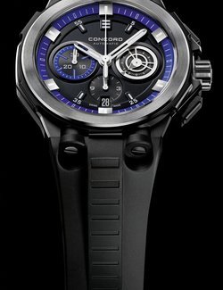 Concord reiterates its attraction for powerful industrial design. While the C2 chronograph makes no secret of its affiliation to the brand, its sleeker line breaks with the C1’s design codes. The new techno blue and striking white accents go against the grain of the usual played-down construction to inject volume and a fresh contemporary note. The almost tone-on-tone, multi-level dial ensures perfect legibility. The black or white rubber strap smoothly integrates thanks to new horizontal tubular attachments that are literally embedded in the case. The powerful, contemporary aesthetic of the C2 clearly bears the hallmark of a Concord watch.