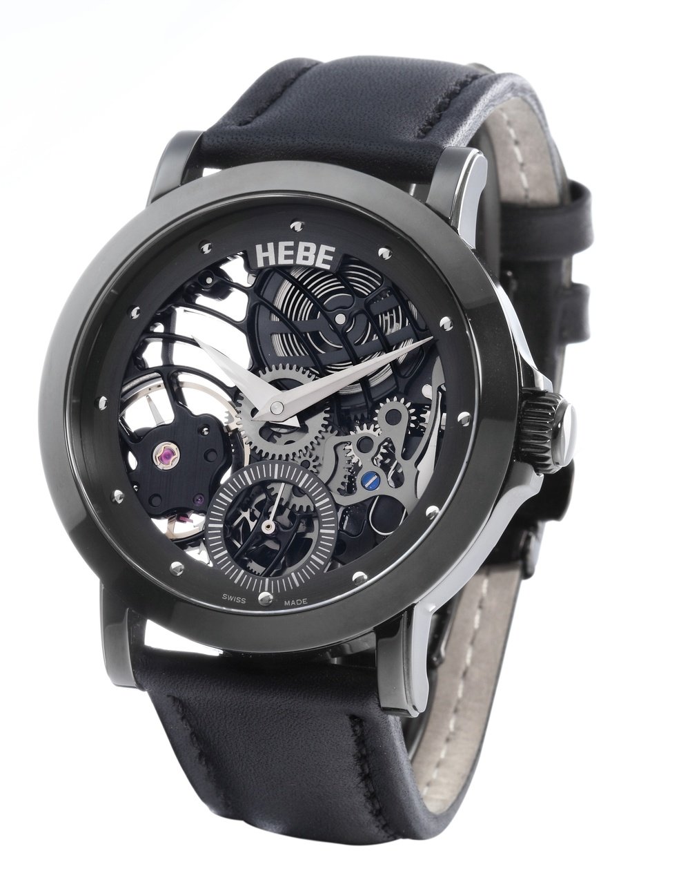 The Aurore watch is a finely executed timepiece from HEBE. A homage to the watchmaking tradition of the Swiss Jura, the brand expresses its founding values – confidence, seduction and vitality - through the combination of different metals and the skeletonised movement. The rare but no less captivating auroras borealis have inspired the traditional yet at the same time highly contemporary design of this monochrome watch. The galvanised steel, matched with the absence of a dial, produces an ingenious interplay of forms and transparencies that hints at the magnetic activity behind these auroras. Robust yet light, structured yet spontaneous, this timepiece is indeed a heavenly sight.