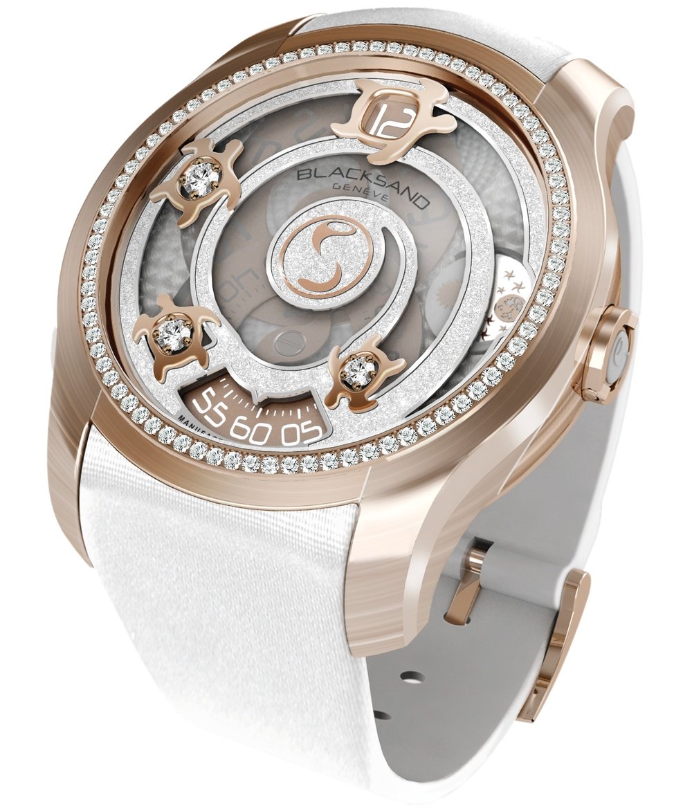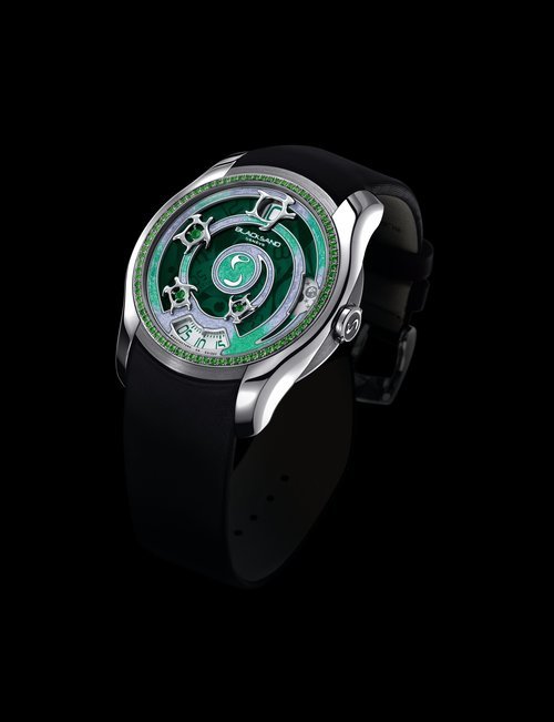 The White Sea Turtle tells of life and time! An elegant means of raising public awareness of the vulnerability of the natural beauty of our surroundings. These new codes rooted in the brand philosophy are expressed with admirable simplicity. The sapphire dial is topped by an openworked motif sparkling with a dusting of diamonds, while three turtles enliven this display of a time that is chosen today in order to protect tomorrow!