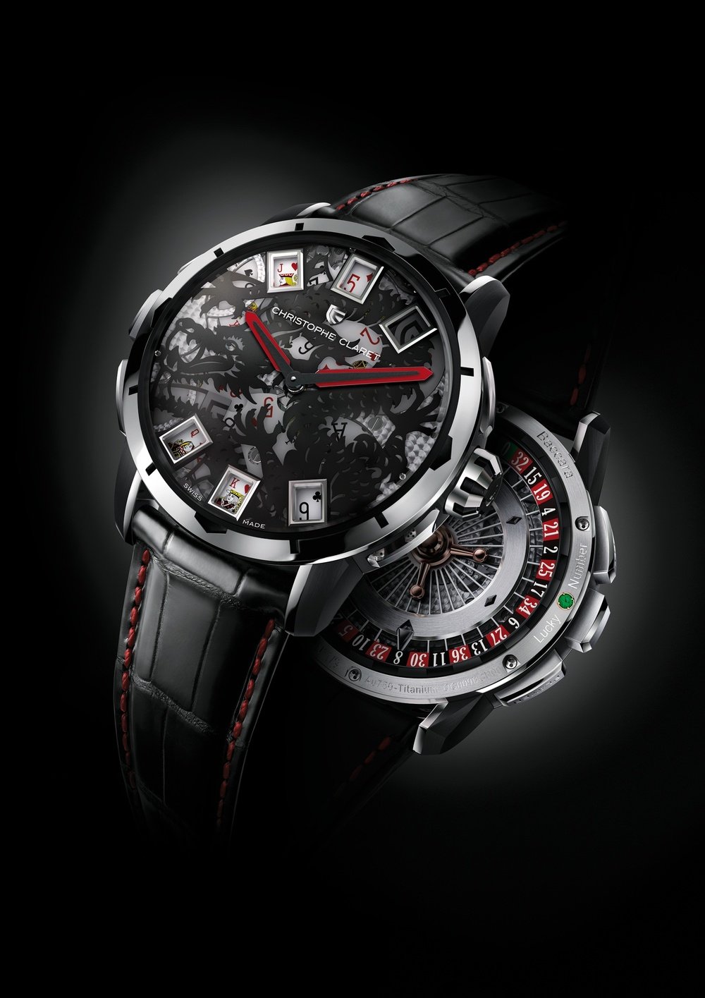 Christophe Claret’s fascination with gaming knows no limits! Introducing Baccara, whose exclusive movement incorporates its own miniature casino. Place your bets at baccarat, roulette or craps, all with visual and sound effects. Blow on the sapphire crystal and a mystery Chinese ideogram appears. Christophe Claret has produced an exciting piece of horological art, proposed in several combinations, each limited to 9 pieces.