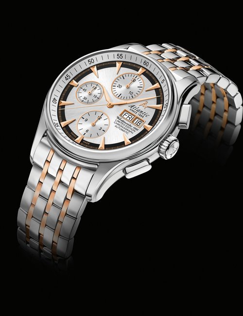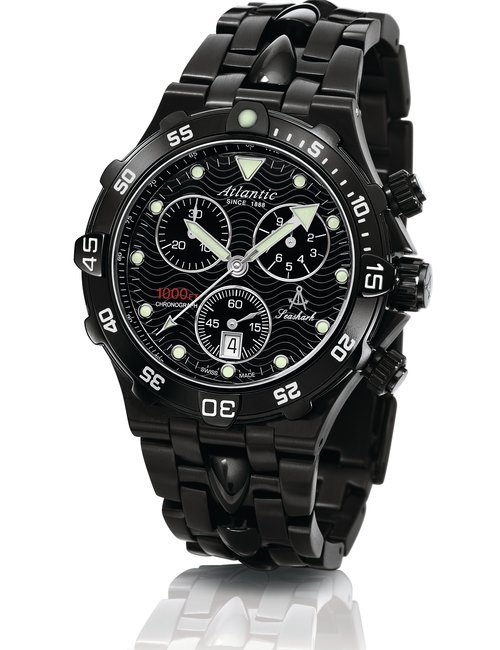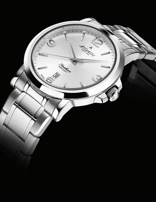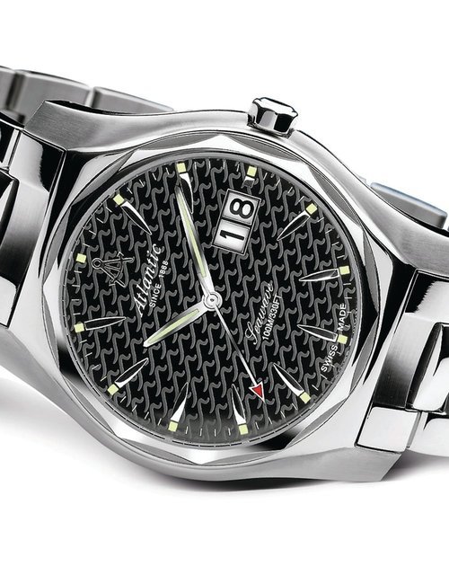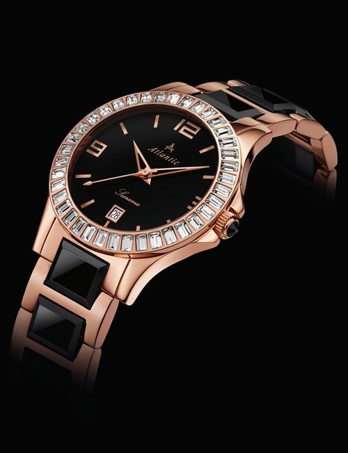 Atlantic adds to its collections with the Searamic, a city-chic watch with the contemporary twist of ceramic. This innovative timepiece is proposed in a steel or PVD gold-plated case whose 20x24 mm size is the essence of sobriety and discretion. Four hourmarkers, alternating Arabic numerals with delicate applied squares, enhance the white or black dial. This is a watch that says subtle sophistication. Ceramic links in the bracelet illuminate this new timepiece. Immaculate white or intensely black, this contrast of colours and textures orchestrates the different elements into a timepiece of absolute harmony whose hallmarks are elegance and seduction.