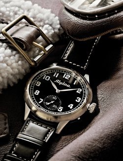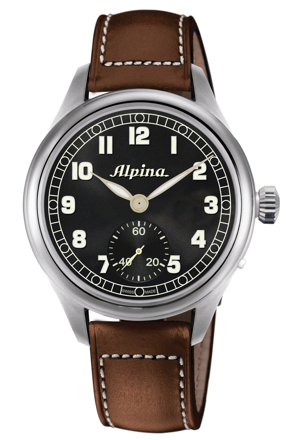 Heritage Pilot is a contemporary rendition of Alpina’s 1920s and 1930s pilot’s watches that conserves many of the original characteristics, from the hand-wound pocket-watch calibre to the applied hourmarkers and Alpina logo on the dial, or the hinged back that reveals the movement when opened. Other features, meanwhile, have been upgraded to meet modern standards. The precision of the movement has been honed and the case is crafted from stainless steel. Sobriety is at the heart of this timepiece, with its mat black dial, luminescent hands and off-centre seconds at 6 o’clock. Produced as a limited series of 1,883 pieces, this classic watch pays tribute to the brand’s rich past, and promises great things for the future with its resolutely up-to-date vintage style!