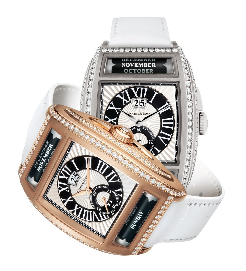 With Chapter Two, Peter Speake-Marin and Daniel Roth went beyond the exceptional in pushing the limits of Fine Watchmaking. The triple calendar with the large-sized instant display now appears clothed in the ageless splendour of 205 Top Wesselton VVSI diamonds adorning its white or pink gold case and offering a perfect association of noble materials and precious stones. The sunburst guilloché silver-toned dial becomes a perfect setting to showcase the large date at 12 o’clock and the offset seconds at 6 o’clock. The two revolving rollers displaying the day of the week and the month of the year – written in full – endow this timepiece with unprecedented readability.