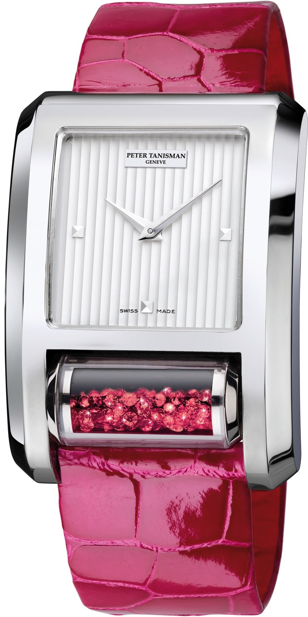 Love is in the air! Carrousel Red Passion by Peter Tanisman is set to turn the head of women everywhere, and especially those in love. A light touch on the sapphire roller sets a myriad of rubies whirling and twirling. The flamboyant red alligator strap also evokes passion, while the dial adorned with a slender “gadroon” motif adds a final touch of refinement to this timepiece. The finest declaration of love for Valentine’s Day… and all the other days of the year too!