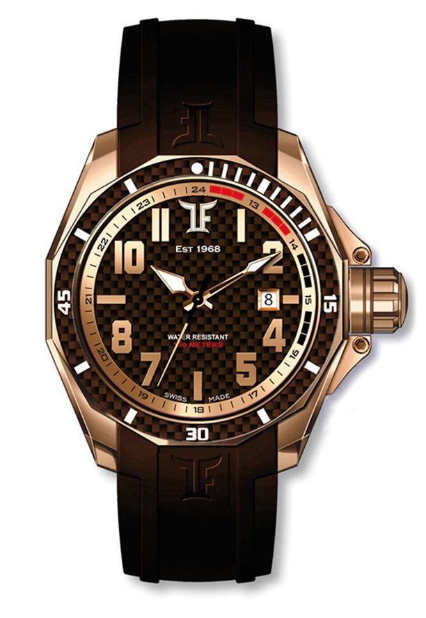 TF Est. 1968, a global yet all-Swiss brand, launches T-Fun, an ultra-trendy watch collection comprising two key lines: a three-hand automatic version and a quartz chronograph. Their signature codes include a dial and bezel with carbon fibre, as well as highly luminescent hands and logo. Their price is very attractive and the range of colours is impressive, with gold-plated, white, black, green, brown and red versions. They’re going to fly off the shelves!