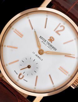 Revue Thommen can pride itself on having produced over one hundred movements since 1853. In keeping with this proud tradition, its latest model, the Classical 82 Round, houses the brand’s GT 82 movement. Inspired by legendary pilot watches, this timepiece has a round case, though the dial is presented in a more contemporary fashion, with shades of pink gold delicately highlighting the hour markers and hands. One of Switzerland’s oldest watch manufacturers offers here a neo-classical model that exalts simplicity, elegance and refinement in the purest tradition of horological savoir-faire.