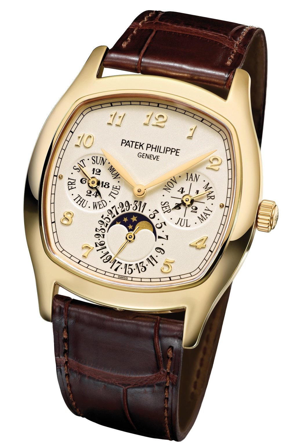 A great classic from the Manufacture Patek Philippe, the ultra-thin automatic perpetual calendar 240 Q calibre is interpreted in an elegant and original manner within a retro-contemporary styled cushion-shaped case. Despite the large number of pointer-type indications, the dial is distinguished by its peerless readability and perfect visual balance.