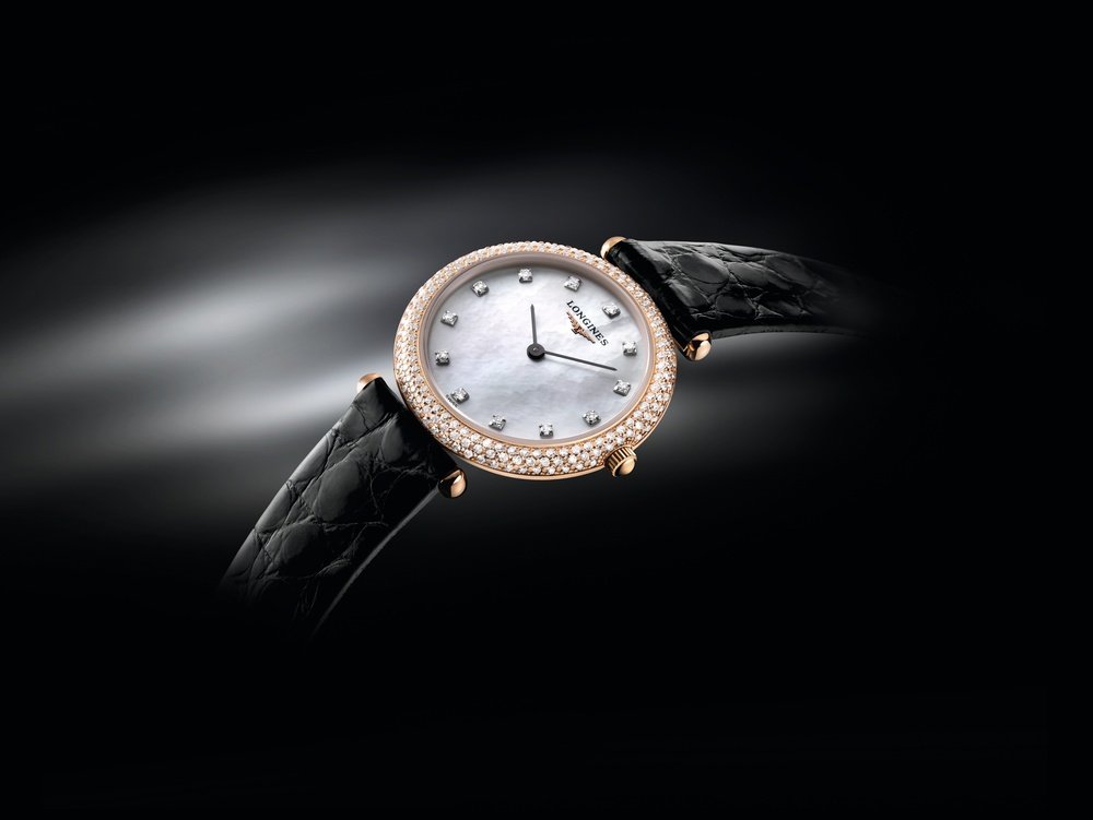 To celebrate 180 years of elegance and tradition in due style, Longines presents an anniversary model clad in gold and diamonds. The Agassiz 180th Anniversary Limited Edition updates the collection launched in 1982, in tribute to the company founder Auguste Agassiz. This timeless creation appears in an ultra-thin pink gold 25.50 mm-diameter case, delicately set with 180 diamonds. The white mother-of-pearl dial and its 12 diamond hourmarkers set a graceful finishing touch to this exceptional piece issued in an 180-piece limited edition. To perfect this harmonious picture and enhance the radiance of the model and its subtle proportions, a black alligator strap with a dainty buckle will gently encircle slender feminine wrists.