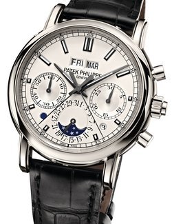 Hours, minutes, seconds, perpetual calendar (day, date, month, leap year), day/night indication, moon phases and split-seconds chronograph