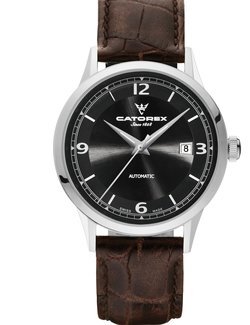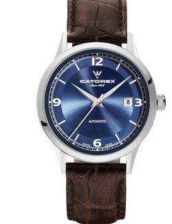 Catorex trains the spotlight on its prestigious past with the C’Vintage collection whose classic lines take inspiration from a 1960s model. References to tradition continue in the form of the authentic vintage Schild AS 2063 movement that drives each one. Fully reconditioned and decorated, this rare calibre keeps time with great regularity thanks to a frequency of 21,600 vibrations per hour. The transparent case back discreetly draws attention to this unique attribute. The round case and pointed hands have prompted Catorex to propose four versions of the dial: blue, copper, anthracite and silver. Today, as in the past, the Swiss Jura brand signs each of its models with a “C” set discreetly on the winding crown. 499-piece limited series.