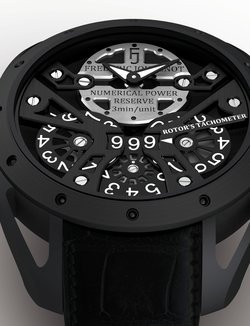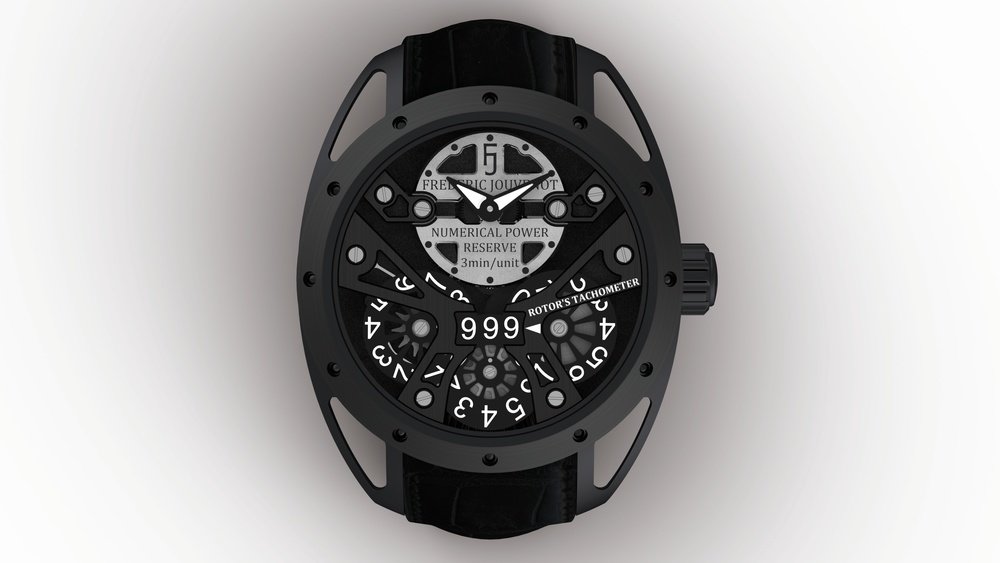 After its chronograph with dial-side rotor and a collection in honour of the solar deities, Frédéric Jouvenot is back in the spotlight with an unprecedented, patented complication that adds a whole new dimension to the power-reserve indicator. This technical exploit is the aptly named Tour de Force. For the first time ever, a timepiece records the number of rotations of the oscillating weight and indicates units of power reserve at the same time. Three discs displaying three large numerals in a window occupy the bottom half of the dial. Each time the oscillating weight makes one rotation, the power reserve advances by one unit. The owner of the watch sees the figures change with each turn of the oscillating weight… all the consequence of his own movements. When the display shows 999 rotations, the power reserve is at its maximum. If the owner isn’t wearing his watch, meaning the oscillating weight is stationary, the power reserve diminishes unit by unit. Once the oscillating weight indicator shows 000, the power reserve is completely depleted. Naturally, such impressive mechanics come wrapped in an innovative design. The lugs are slightly rounded to follow the natural curve of the wrist. Also, the inside of the lugs is cut away for lightness and to create an even more contemporary style. The absence of a dial focuses attention on the exceptional and truly original three-dimensional layout.