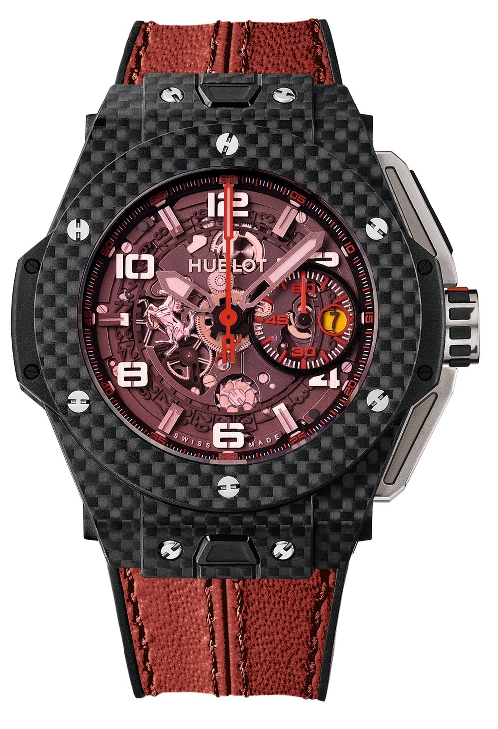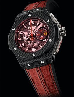 The success of the two first Big Bang Ferrari watches in 2012 is already inspiring new models! Three timepieces are to join the extremely select circle of this cooperation between Ferrari and Hublot, including the Carbon Red Magic. With a case and a movement – named the UNICO – entirely designed, developed and produced at Hublot, this watch is the symbol of the brand’s progress towards vertical integration. It boasts a wealth of performance, including a reliable and robust Flyback chronograph function distinguished by the original positioning of its double coupling-clutch mechanism and the famous column wheel visible on the dial side. The equally impressive carbon fibre case is built on a multi-layered principle that avoids bubbles and thus enhances its resistance. Finally, the mass of the red sapphire crystal was coloured directly during its making, thereby guaranteeing its unalterability.