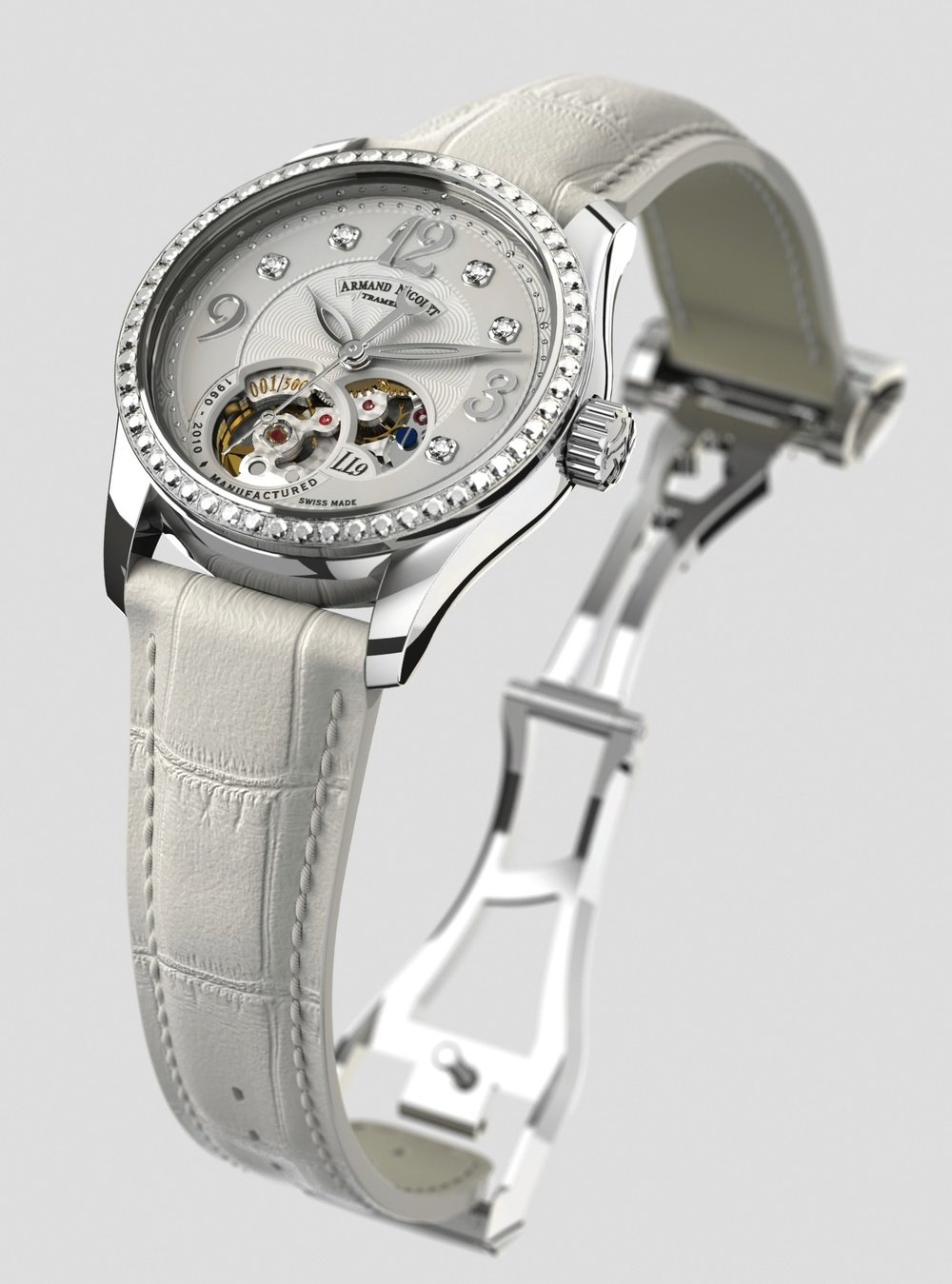 The first limited-edition collection dedicated to women, the LL9 line draws its aesthetic inspiration from the M03 collection, and its temperament from the vintage calibre driving it, the FHF 905 dated 1960! Its tried, tested and now modernised mechanism embodies a perfect blend of Swiss watchmaking traditions and avant-garde technology. The 500-piece limited edition, matching the number of available movements, testifies to the exceptional value of time according to Armand Nicolet.
