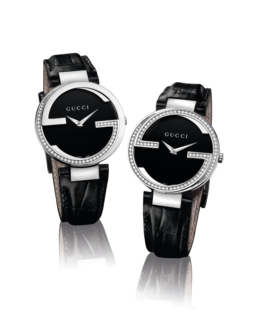 The Interlocking collection comes in various versions all featuring one of the most recurrent Gucci icons: the two interwoven G letters symbolising the initials of the House founder, Guccio Gucci. With its vast range of materials – ranging from a metal bracelet to black or brown calfskin straps, as well as black, brown or white crocodile leather variations – this collection is intended for both men and women. The cases, adorned with the GG motif, are made in stainless steel or in black or brown PVD-coated steel, framing sunburst brushed dials. On the precious versions, the GG motif is partially or entirely set with diamonds, or crafted in 18k pink gold. With the Interlocking collection, Gucci Watches remains true to its tradition of creating elegant and contemporary watch lines.