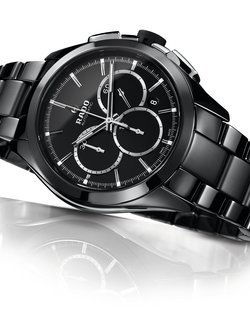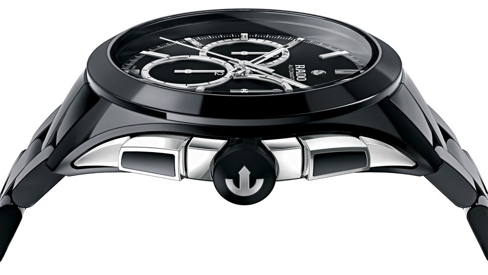 The new Rado HyperChrome Automatic Chronograph is a landmark in the history of watchmaking, as it world-premieres a 45mm monocoque case that uses injection-moulding technology to combine ceramic with steel. It’s also a milestone for the brand as it continues to hone its designs: fluid, subtle and stylish. The emphasis is on contrast with steel side inserts, ceramic pushers, a steel and rubber crown, and rhodium-plated hourmarkers, counters and hands. As well as playing on materials, Rado looks to mat and polished finishes to accentuate this watch’s sophisticated yet sporting attitude. Hinting at the mechanics, the moving anchor is visible in an aperture at 12 o’clock. This model is also proposed in white or platinum colour, in a collection that boasts 32 versatile and attractive variants.
