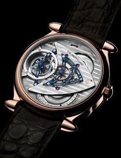 Mechanical hand-wound, DB 2509 calibre, silicon/titanium tourbillon, 499 parts, 45 jewels, 36,000 vib/h, 4-day power reserve; double self-regulating barrel, silicon/white gold balance, silicon escape-wheel, Côtes de Bethune decoration