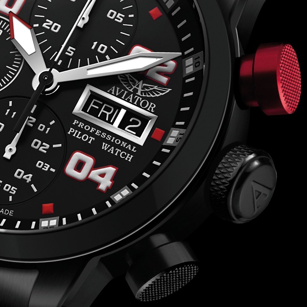 Measuring short times is a vital function for the pilots in the “Swifts” Russian aerobatic display team who match dexterity with breathtaking speed. Aviator, their official sponsor, supports them in their nerves-of-steel exploits with the Professional Edition, a limited series of 300 that has earned its place in the cockpit of the Fulcrum jet fighter. These chronographs are only made available to the public after being put through their paces by professional pilots. An imposing construction and inimitable style will appeal to fans of ultimate mechanics, including those who keep their feet firmly on the ground.