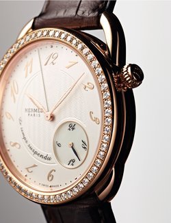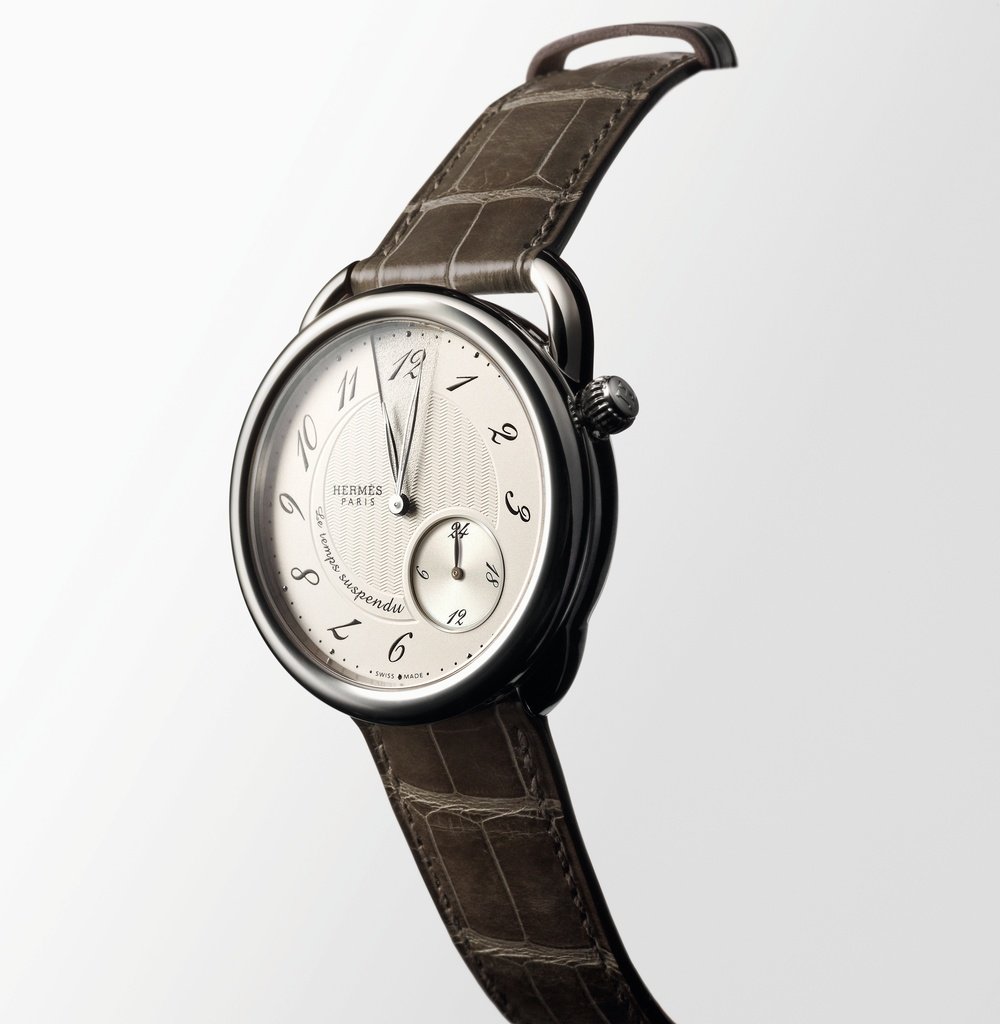 It’s time to dream at Hermès. A new chapter in the story that started in 2011, Arceau Le temps suspendu adopts a 38 mm case and prolongs the interlude in time begun with the first model. A press on the pusher at 9 o’clock, and the magic begins to weave its spell as the hour and minute hands come to a halt at round 12 o’clock. The time is erased from the dial and thus dissociated from standard time that begins running thanks to the Manufacture H912 movement. A playful hand, turning counter-clockwise on an indicator between 4 and 5 o’clock, signals that the mechanism is indeed in operation. Another press brings the hands back to their proper place and time starts running again.