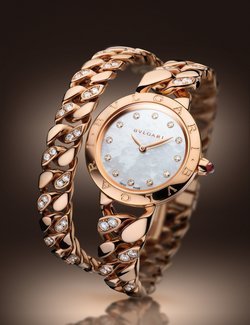 Bulgari Bulgari Catene is as much a jewel as a timepiece, a showcase of watchmaking magnificently sculpted in gold. This most famous of wristwatches bears the hallmarks of the celebrated Italian jeweller whose heritage has shaped each of its new models, including Catene with its chain links. Assembled into the legendary bracelet that coils twice around the wrist, a favourite signature of the brand, they interweave with deceptive simplicity. Each of these links, some set with diamonds, is dazzling proof of the expertise deployed by Bulgari’s jewellers and watchmakers. Daring but sensual, elegant but extravagant, Catene gives women a new way to wear time like a second skin. A distinctly unconventional, and so very Bulgari, pink-gold jewel.