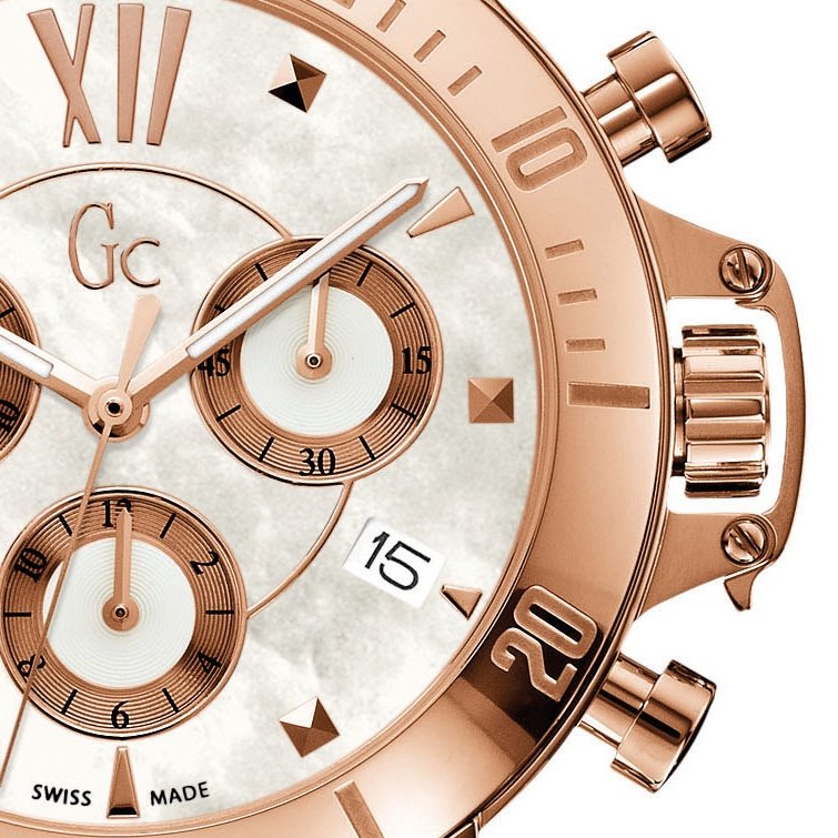 Radiant, glamorous, full of life… this lady’s sports-chic chrono will certainly be turning heads this year. Who could fail to notice its all-over rose gold livery? The case and bracelet in stainless steel embellished with a rose gold PVD treatment perfectly sets off the dial whose mother-of-pearl has been tinted in the same ultra-feminine rose-gold hue. Further the distinguishing clip-down crown-protector detail provides a decisive character to this sophisticated timepiece for the multi-facetted woman of today.