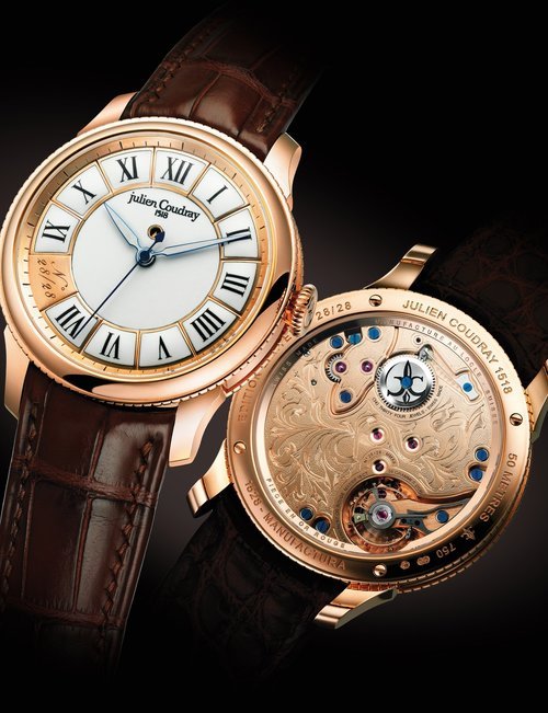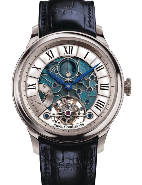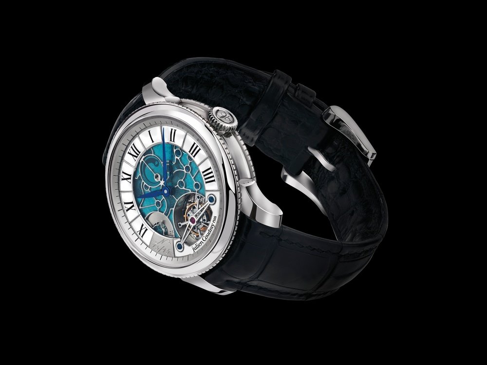 Hand-wound mechanical, one-minute tourbillon, Julien Coudray 1515 15" calibre in solid 950 platinum, hand-engraved, 60 jewels, 28,800 vib/h, 55-hour power-reserve