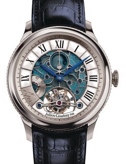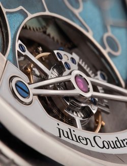 Hand-wound, one-minute tourbillon, Julien Coudray 1515 calibre in solid platinum. Solid platinum case.