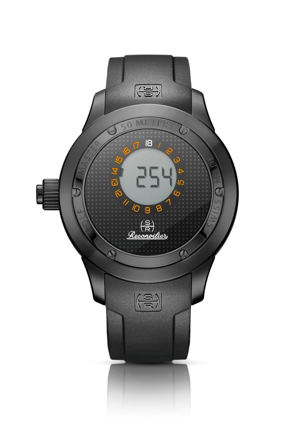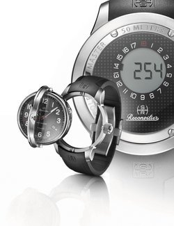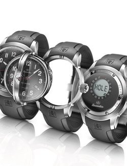 This is THE benchmark watch for golfers! One side shows a classic face with three hands and a date. Flip it over and it is transformed into a useful