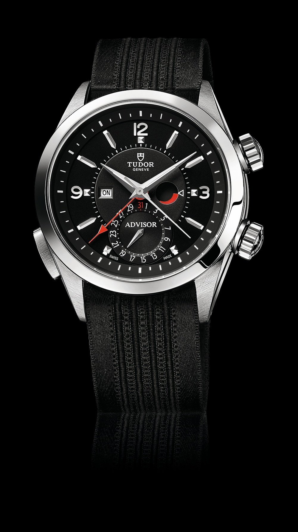 Mechanical automatic movement, TUDOR calibre 2892 with additional alarm module exclusively developed and patented by TUDOR. Titanium and steel case. Hours, minutes, seconds, alarm, date. Steel bracelet or alligator leather strap, with additional fabric strap.