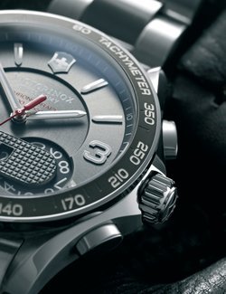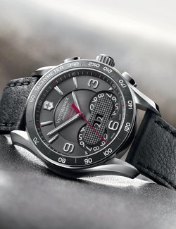 Everyone has heard of its famous Swiss Army knives, but Victorinox has more than one trick up its sleeve. It also makes watches, and not just any old watches. The proof: its new chronograph measures time to one hundredth of a second. Even better, this precision is displayed digitally on two small rotating discs in the lower part of the dial and is 100% Swiss! Serving alternately as a chronograph counter or a perpetual calendar, these discs are surmounted by the iconic “Swiss officer’s knife” pattern. What could be more Swiss than that !