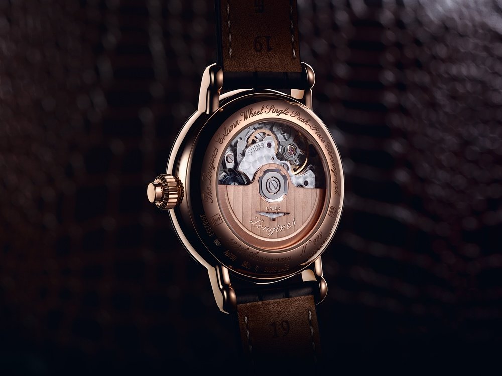 Taking inspiration from Longines’ first chronograph wristwatches, in 1913, this timepiece houses an exclusive Longines movement which, like its illustrious predecessor, is equipped with a column wheel and measures 13¼ lines. Each of the chronograph functions is controlled by simply pressing the push-piece, which is inserted in the fluted crown. Proposed in three versions, The Longines Column-Wheel Single Push-Piece Chronograph recalls these historic timepieces with its white dial adorned with painted black numerals, with the exception of the “12” in red; a direct reference to the dials of that era.