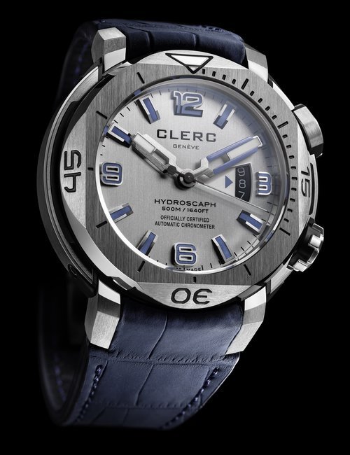 Two central hands providing an original short-time display mode: such is the exclusive solution showcased by Clerc Genève in the Hydroscaph Limited Edition Central Chronograph. The first central sweep-seconds hand indicates the chronograph seconds, while its twin shows the minutes. This innovative display ensures exceptional readability for an instrument that tolerates no aesthetic or technical compromises. A prestigious timepiece designed for short-time measurements, the Hydroscaph Limited Edition Central Chronograph is the most spectacular means of celebrating success.