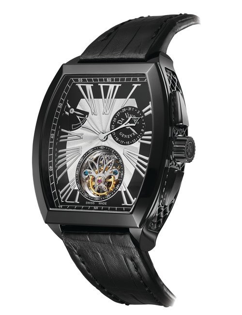 Tourbillon topped with Da Vindice logo in the centre, small seconds on the carriage